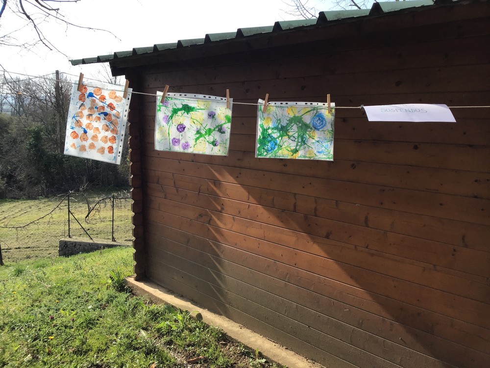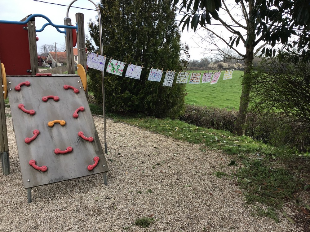 Voici en photos quelques unes des réalisations des enfants, accrochées dans la cour de récréation …