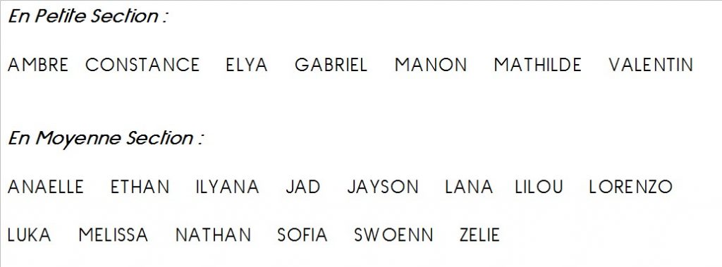 Les prénoms qu’il est possible d’écrire correspondent aux prénoms des enfants de la classe de cette année, c’est-à-dire :