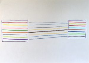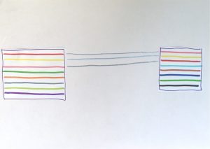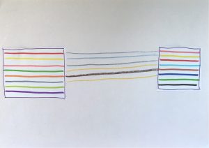 - les lignes entre les deux carrés ne sont pas forcément des lignes droites, elles peuvent avoir différents tracés. Dans ce cas, on n’est pas obligé de relier toutes les lignes.