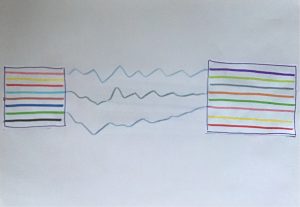 – lui faire tracer des lignes entre les 2 carrés pour RELIER les lignes tracées à l’intérieur des carrés (voir un exemple ci-dessous).